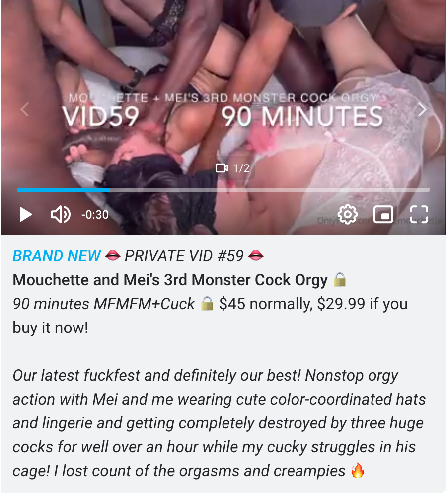 1.独家资源-OF淫妻媚黑博主Mouchette付费VID资源10V/13.1G