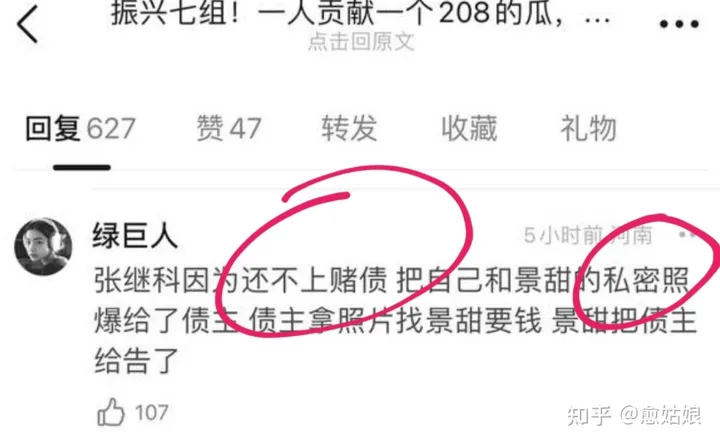 事情的起因是,一位网友在小组爆料,张继科因为还不上赌债,把自己和景甜的私密照爆给了债主,债主拿照片找景甜要钱,景甜把债主给告了,见下图