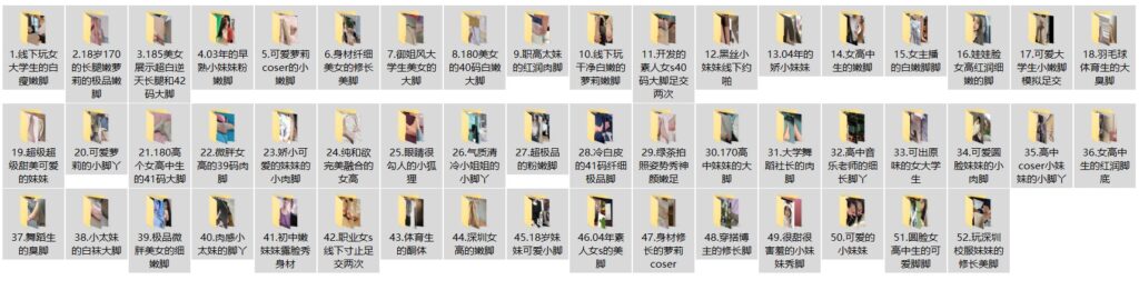 大神套路52个学生妹子私拍美足等,含高清图和视频等,视频共349部,总时长5小时56分;